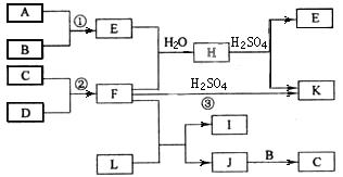 ⑶L的溶液与化合物E反应的离子方程式__________________________。