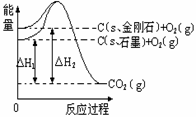 已知25℃、101kPa下,如右题图所示,石墨的燃烧热为393.51kJ/mol,金刚石的燃烧热为395.41kJ/mol 。下列说法或表达正确的是: