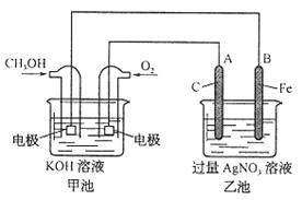 为电解质的用于手机的可充电的高效燃料电池,充一次电可连续使用一个月。下图是一个电化学过程的示意图。已知甲池的总反应式为:2CH3OH+3O2+4KOH