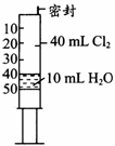 HCl+HClO。常温下,在一个体积为50 mL的针筒里(如图)吸入40 mL氯气后,再吸进10 mL水,放在光亮处。