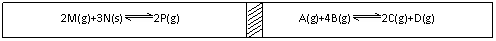 22.(4分)在一个密闭容器中,有一个左右可滑动隔板,两边分别进行可逆反应,各物质的量如下:M、N、P为2.5mol、3.0mol、1.0mol。A、C、D各为0.50mol,B的物质的量为x,当x的物质的量在一定范围内变化,均可以通过调节反应器的温度,使两侧反应均达到平衡,且隔板在反应器的正中位置。达到平衡后,测得M的转化率为75%,填写空白: