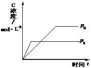 nC(g)(正反应放热)生成物C的浓度随压强变化并建立平衡的关系图,则n值与压强p1、p2的关系正确的是