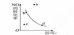 2NO2(正反应是放热反应)反应中NO的转化率与温度的关系曲线,图中标有a、b、c、d四点,其中表示未达到平衡状态,且v(正)>v(逆)的点是 ( )