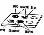 ①装有铜片的孔穴中溶液呈蓝色 ②装有胆矾的孔穴中固体的颜色变浅 ③装有铁片的孔穴中溶液呈浅绿色 ④装有铁片的孔穴中溶液呈浅黄色 ⑤装有蛋清溶液的孔穴中呈浅黄色