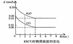 (3)在一体积为10L的容器中,通人一定量的CO和H2O,在850℃时发生反应,CO和H2O浓度变化如下图,则 0-4min的平均反应速率v(CO)=______ mol/(L·min),850℃的化学平衡常数的值K=