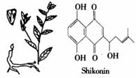 紫草宁(shikonin,见下图)是从生长在亚洲学名叫Lithospermum