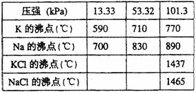 (1)在常压下金属钾转变为气态从反应混合物中分离的最低温度约为___________,而反应的最高温度应低于_______________。