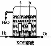 (5分)美国阿波罗宇宙飞船上使用的氢氧燃料电池是一种新型的化学电池,其构造如图所示;两个电极均由多孔性碳制成,通入的气体由孔隙中逸出,并在电极表面放电。