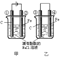 (4)甲、乙两装置电极附近的溶液首先变红的电极分别是 、 (填序号)