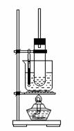 把苯、浓硝酸、浓硫酸放在大试管中混合均匀。水浴加热十分钟, 反应装置如右图所示。