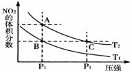 2NO2(g);ΔH=+57 kJ·mol-1,在温度为T1,T2时,平衡体系中NO2的体积分数随压强变化曲线如图所示。下列说法正确的是(