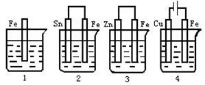 5.下图各容器中盛有海水,铁在其中被腐蚀时,由快到慢的顺序是 [ ]