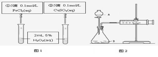 B.若图1所示的实验中反应速率为①>②,则一定说明Fe3+比Cu2+对H2O2分解催化效果好