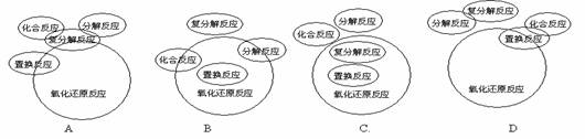 化合反应、分解反应、置换反应、复分解反应与氧化还原反应的交叉分类示意图正确的是( )