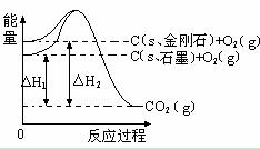 5.如下图所示,△H1=-393.5 kJ•mol-1,△H2=-395.4 kJ•mol-1,下列说法或表示式正确的是