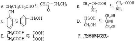 17.(1)下列各化合物中,属于同系物的是(填入编号,下同) ▲ ,属于同分异构体的是 ▲ 。