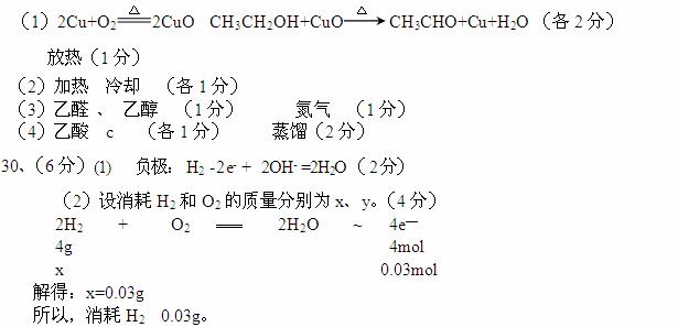 30、(6分)氢氧燃料电池是将H2通入负极,O2通入正极而发生原电池反应,其能量转换率高。