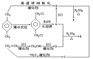请写出:有机物的名称:A____,B____。化学方程式:A+D→E______,B+G→F____。X反应的类型及条件:类型____,条件____。