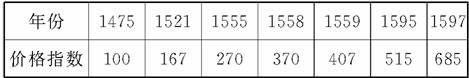 解析:从材料中可知价格指数逐渐攀升,即价格越来越高,结合“1475”、“1597”等信息,可知是新航路开辟后导致的价格革命所致,故选A项。