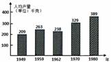 观察下面我国粮食人均变化图,其中促使1949年至1957年粮食人均产量提高的主要原因是