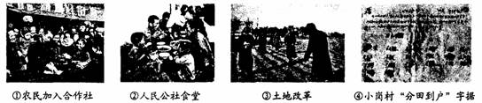 11.某陈列馆举办“建国后农村生产关系变革”图片展。现有以下四幅图片,请按时间先后顺序排列