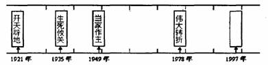 14.下列历史年代尺展示了中国共产党建党以来的奋斗历程,其中与1997年相对应的方框里应该填写