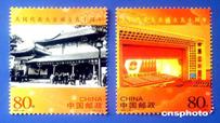 右图是一套纪念邮票照片,上面写着人民代表大会成立五十周年。请问这套邮票是哪一年发行的