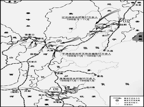 (1)中考资源网根据图上编号填出三大战役的名称 ① ② ③
