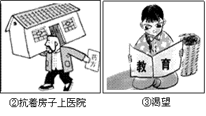 (1)漫画①②③分别反映了当今社会关注的哪一民生问题?这些民生问题的存在有何不良影响?(5分)