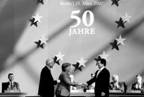 10、右图所反映是3月25日27个成员国首脑齐聚德国首都柏林,举行庆祝该组织成立50周年纪念日,并通过《柏林宣言》,请问这个组织是