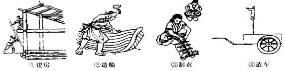1. 传说中的黄帝被后人尊称为“人文初祖”,是因为他对中华民族作出了杰出的贡献。下列图片反映黄帝贡献的是
