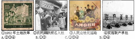7.下图关于建国后农村生产关系的调整中实现了土地所有制根本性变革的是