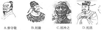 A.张衡 B.郭守敬 C.王桢 D.徐光启