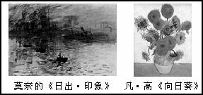 下图为分别画家莫奈的《日出·印象》和凡·高的《向日葵》,它们的艺术风格都属于印象主义。