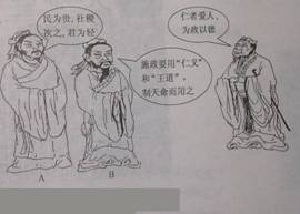 (1)据材料一中三位思想家的主张,人物A和人物B分别是谁?(2分)