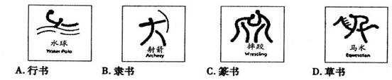 29.2008年北京奥运会的图标设计体现了中国悠久的文化。下图为其中的一组图标,你认为它的设计构思取材于中国书法艺术中的哪一种字体?