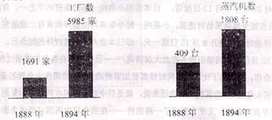 材料二 1888-1894年日本工厂蒸汽机数量变化示意图: