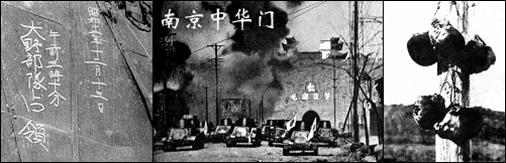 12.图3、图4、图5记录的是同一历史事件。图3中的“昭和十二年十二月十三日”即公元1937年12月13日,图4中城墙上的标语为“誓复国仇”。结合相关资料印证,这三幅照片记录的历史真相是