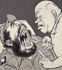 右图是20世纪60年代美国人创作的一副关于“古巴导弹危机”的漫画,图中的牙医是指