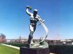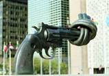 37、下列两幅图片是联合国总部前的两座雕塑的照片,它体现的主旨是
