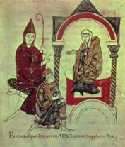 14.右图反映的是11世纪著名的“卡诺莎之辱”。德意志皇帝亨利四世在同教皇的斗争中失利,被教皇开除教籍,国内诸侯乘机反叛。1075年1月,亨利四世冒着风雪严寒,前往意大利北部的卡诺莎城堡向教皇“忏悔罪过”。亨利四世身着罪衣,立在城堡门口三昼夜,才获得教皇的赦免。这件事集中说明当时