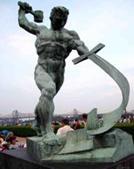 右图为联合国花园内的一尊雕塑,叫做“铸剑为犁”,它是二战后由当时的苏联赠送的。目前威胁世界“铸剑为犁”的主要因素有
