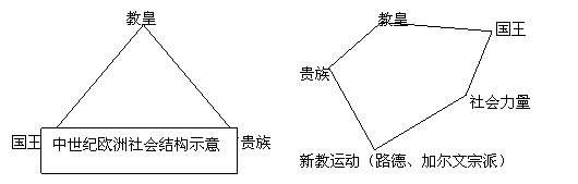 35、宗教改革前,关于教皇和皇帝的权力,有这样一种形象的比喻:教皇是太阳,皇帝是月亮;宗教改革发生,人们换了一种说法:上帝的归上帝,恺撒(泛指皇帝)的归恺撒。这种认识的改变反映了