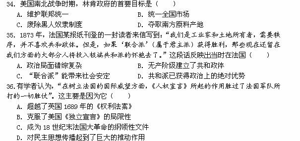 法国历史学家米歇尔.博德说:“在美国,只有在南北战争之后,资产阶级才找到它兴起的道路。”其含义是( )