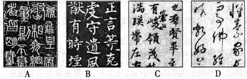 5.平灭六国后,秦始皇“一法度、衡石、丈尺。车同轨,书同文字”。其中“书同文字”是指把以下哪种字体作为全国统一的官方书体? ( )