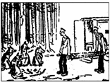 张伯伦和哈里法克斯抬着空担架问狼:“打扰,请问你们是否听见一声尖叫?”狼前面的地上写着“捷克斯洛伐克”字样。