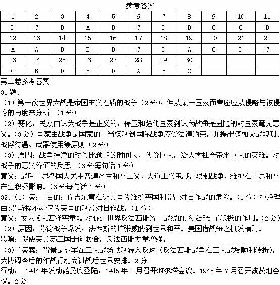 (2)答案:联合国建立在世界人民反法西斯战争过程与胜利的基础上(2分)。