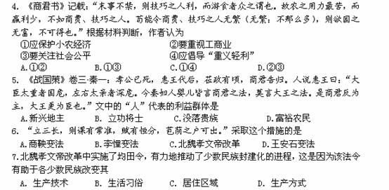 3. 商鞅变法功不可没,但他本人却被贵族诬告谋反,惨遭杀害。在商鞅变法的措施中,直接损害贵族利益的是