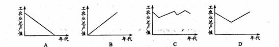 14.下列图示中,最能显示“文革”期间我国工农业总产值变化趋势的一幅是