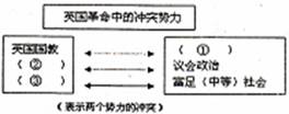 20.陈衡哲在《西洋史》中谈及英国资产阶级革命时说:“这个革命兼有宗教、政治及社会的性质。”并用如下图表加以说明。下图表中空缺部分应该是